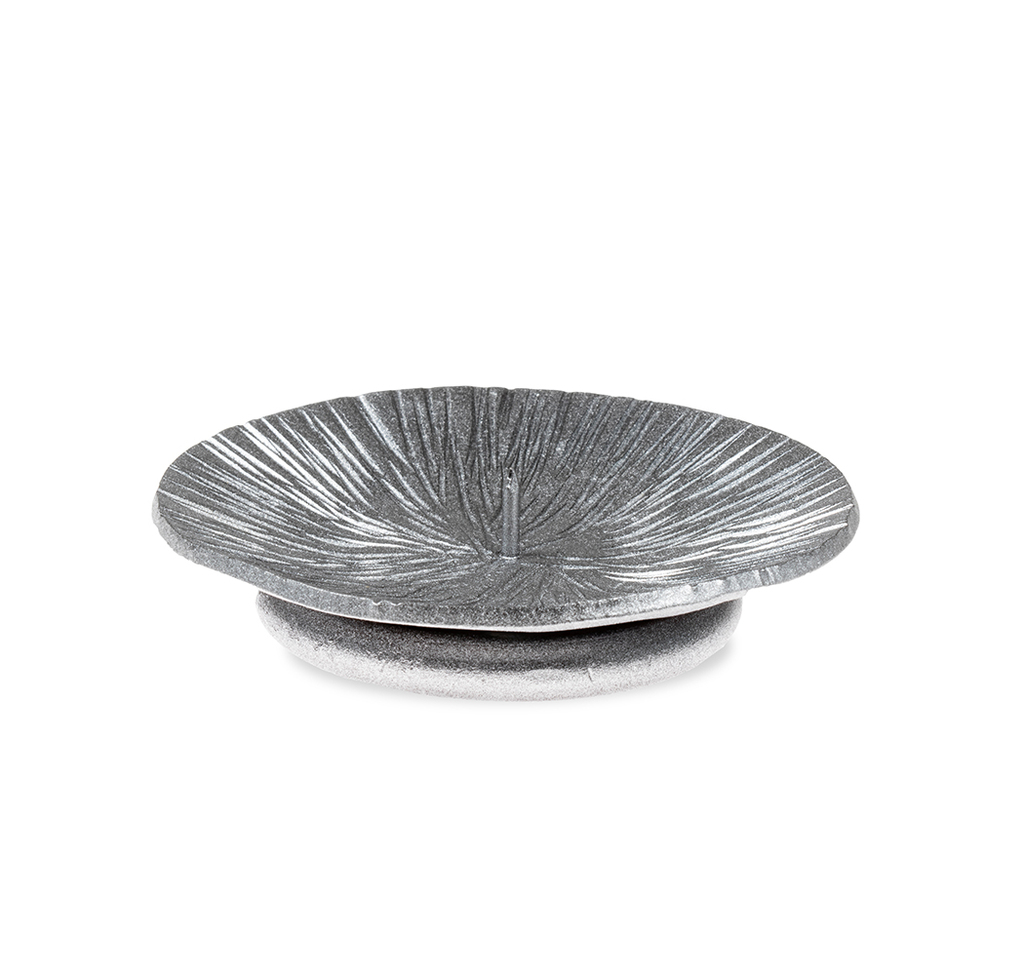 Velký ručně kovaný svícen ve stříbrné barvě je výrazný a nadčasový prvek, který dokonale doplní kolekci Snow Fall a další svíčky se světlejšími či kovovými detaily. Vzniká poctivým kovářským procesem v Beskydech, kde každý svícen získává svůj osobitý vzhled a strukturu typickou pro ruční práci.