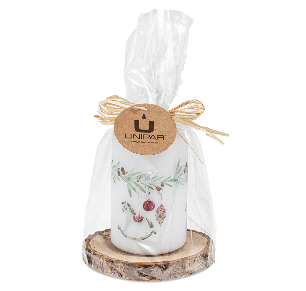 Svíčka Nostalgie v nejmenší velikosti je umístěna na přírodní dřevěné podložce a zabalená do celofánu s mašlí. Jemný akvarelový motiv a ručně broušený povrch z ní dělají milý, estetický dárek pro kolegy, sousedy, učitele i vaše blízké. Je to drobnost, která dokáže rozehřát zimní dny.