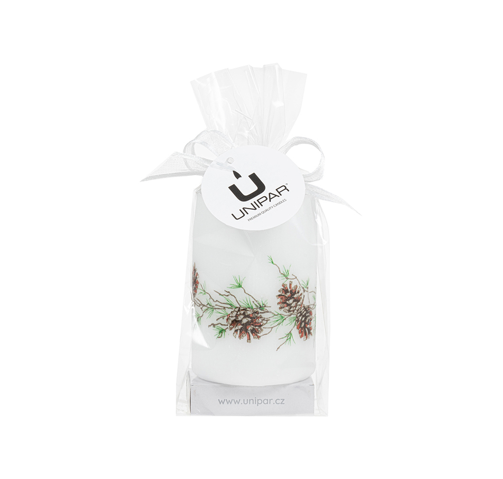 Na bílém, ručně broušeném povrchu svíček se rozprostírají jemné kresby borovicových větviček, jehličí a precizně vykreslených šišek. Každý motiv vznikl nejprve jako ruční kresba, teprve poté byl pečlivě přenesen na svíčku, aby si zachoval svůj přirozený charakter a lehkost.