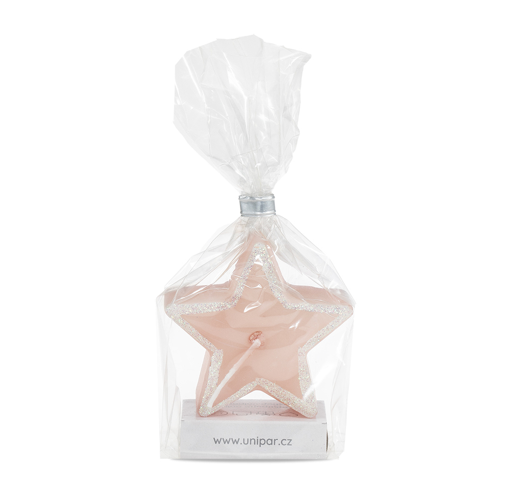 Pudrový odstín propůjčuje svíčce STAR měkkost a jemnost. Ručně nanesená třpytivá linka podél hvězdné kontury zvýrazňuje tvar svíčky bez zbytečné výraznosti.