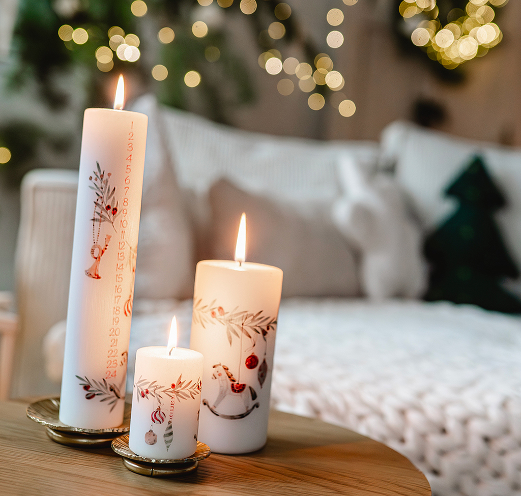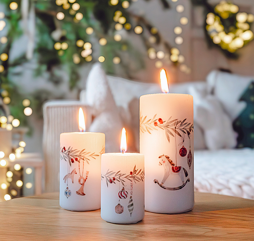 Tato vysoká vánoční svíčka vypráví příběh dlouhých zimních večerů. Když světlo sklouzne po ručně broušeném povrchu, akvarelové motivy získají měkký, snový nádech – jako vzpomínka, kterou člověk nosí v srdci celý život. Velký formát nechává Vánoce rozehrát se naplno.