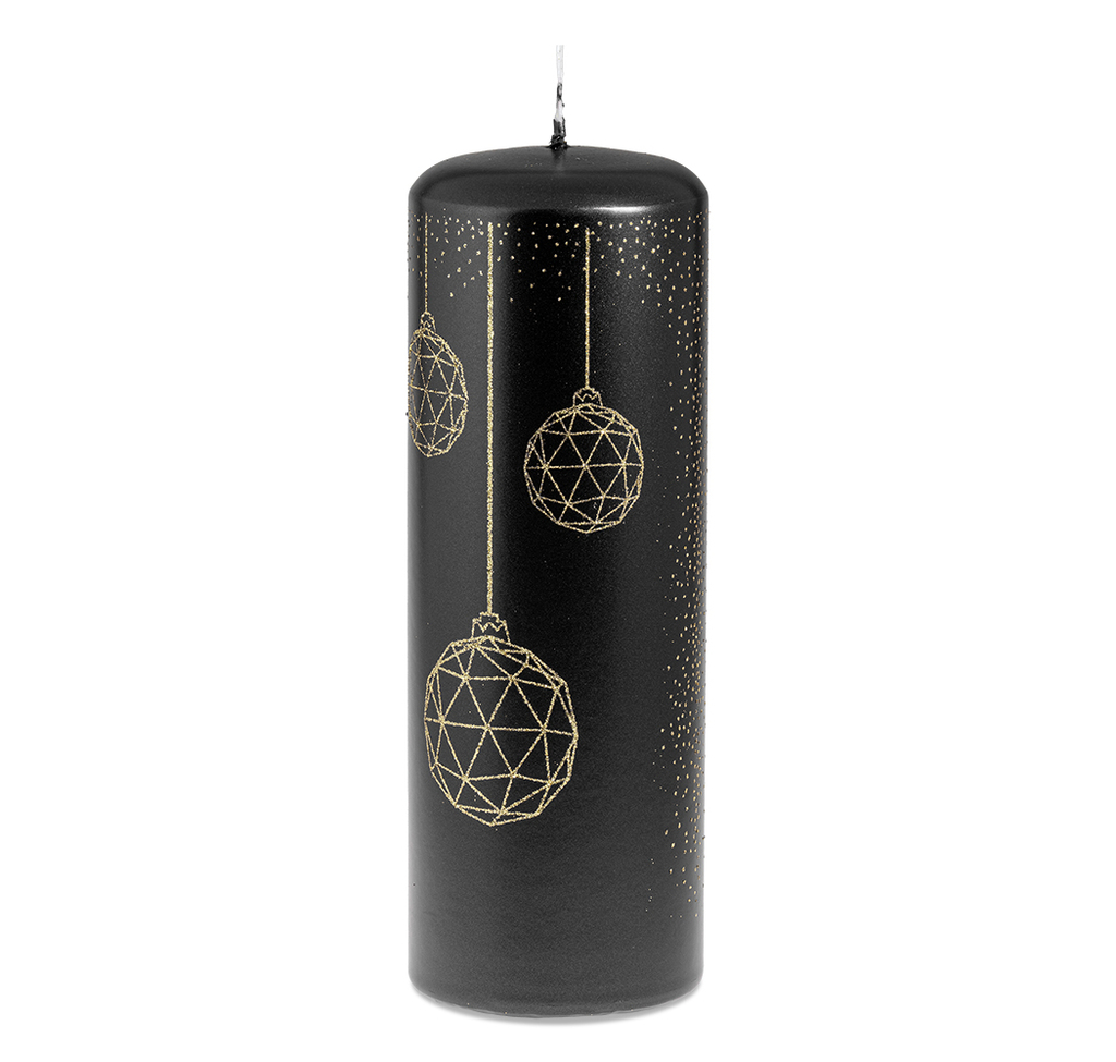 Černá vánoční svíčka s baňkami (L)