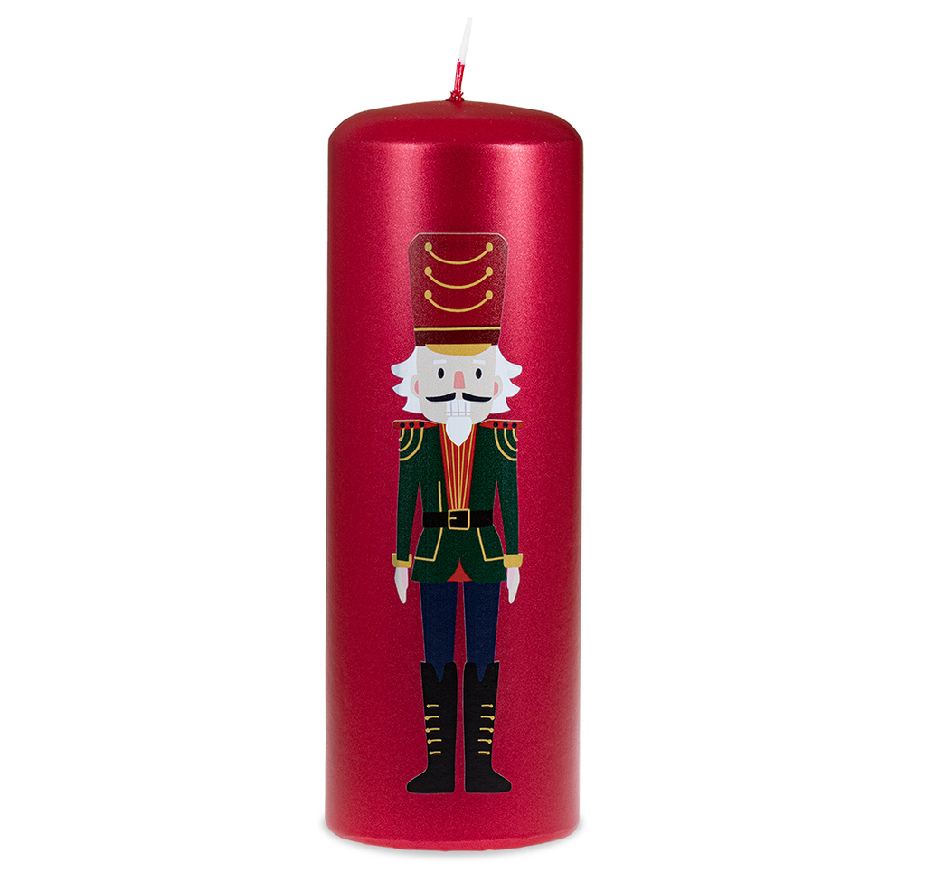 Červené provedení zvýrazňuje symboliku síly, lásky a tradice. Louskáček stojí hrdě jako strážce vánoční atmosféry a na druhé straně se lesknou zlaté a zelené ozdoby, které pod plamenem jemně ožívají.