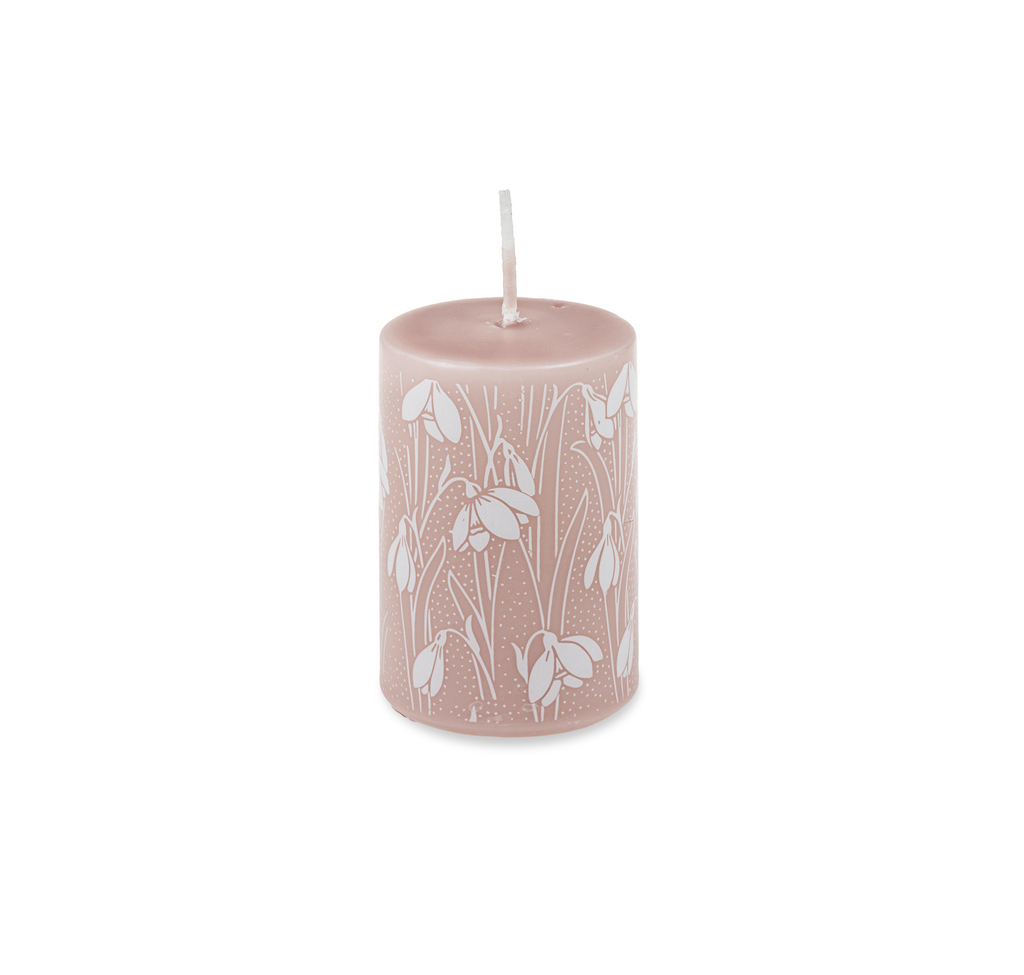 Romantická a něžná – taková je pudrově růžová svíčka v menším provedení. Její jemná barva a vzor sněženek vytvářejí kouzelnou atmosféru jara, zatímco kompaktní velikost ji činí perfektní volbou pro drobnou dekoraci na stole či poličce.