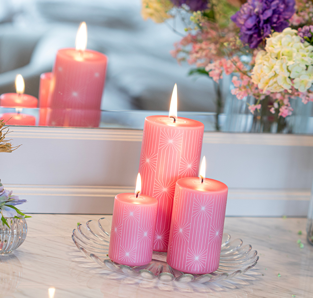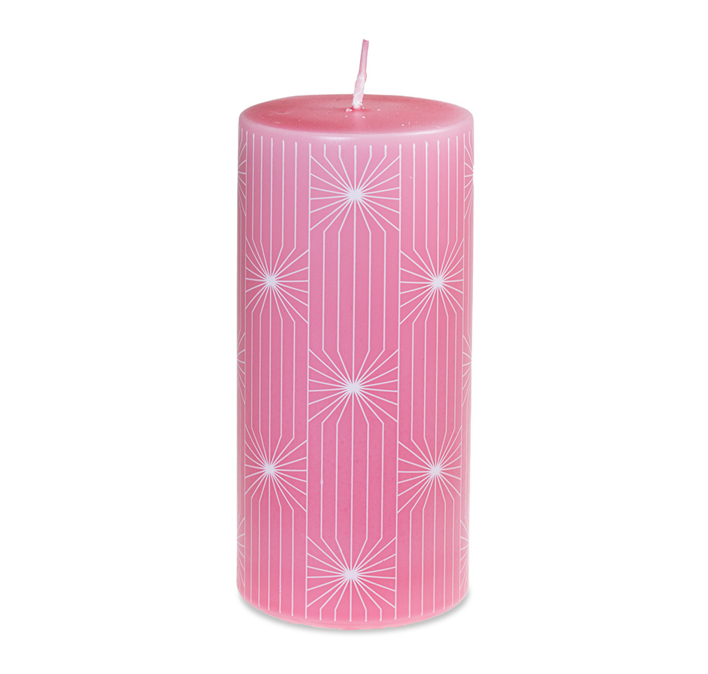 Růžová svíčka s moderními pruhy (L)