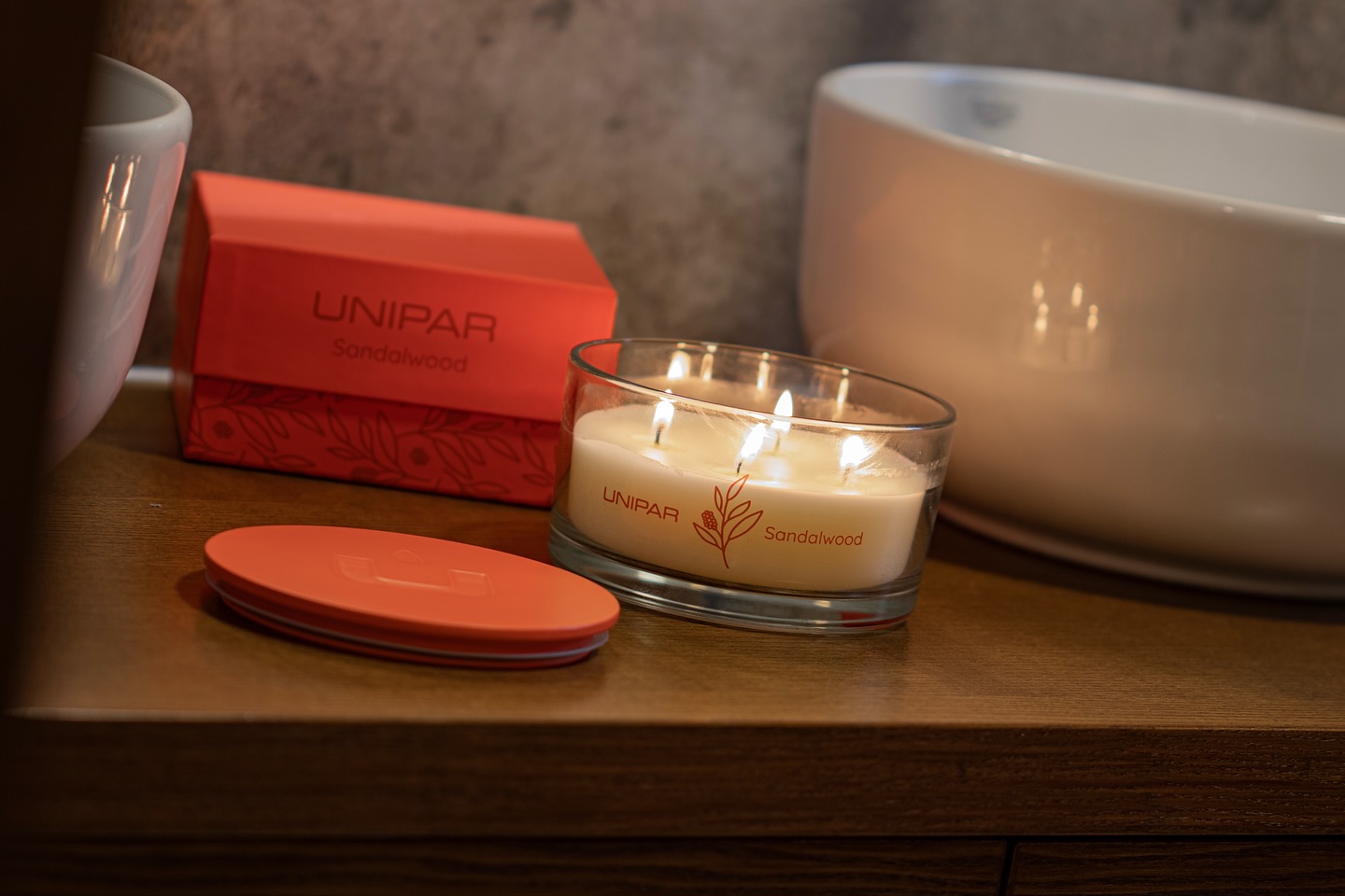 Na svíčce je papírový proužek s logem, který je nutné před zapálením svíčky odstranit.