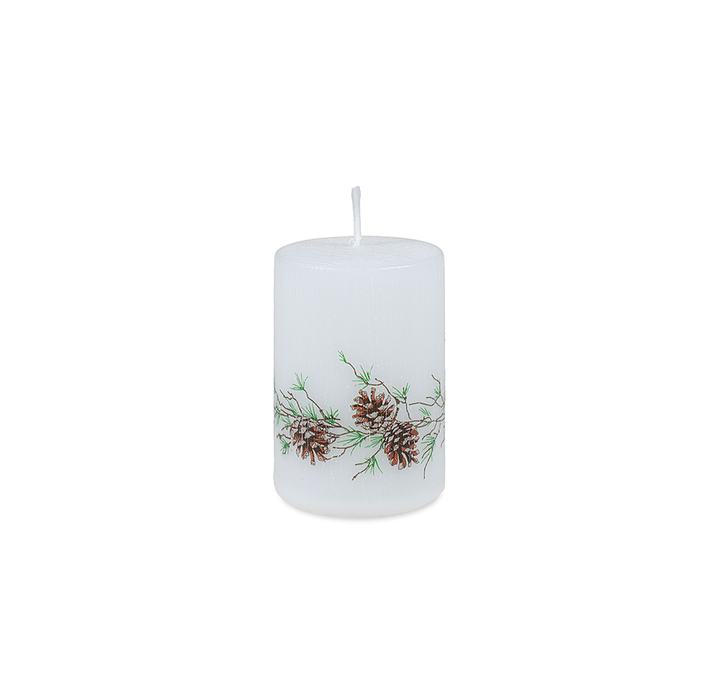 Svíčka z nové kolekce s originálním designem borovicové větvičky s šiškami. Tato svíčka má ručně škrábaný povrch, který dotvoří vašemu interiéru přírodnější nádech.