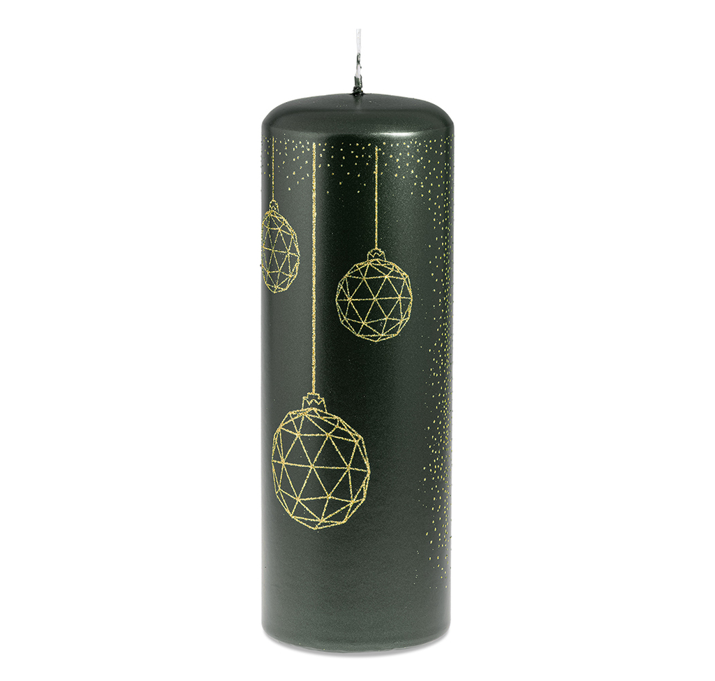 Zelená vánoční svíčka s baňkami (L)